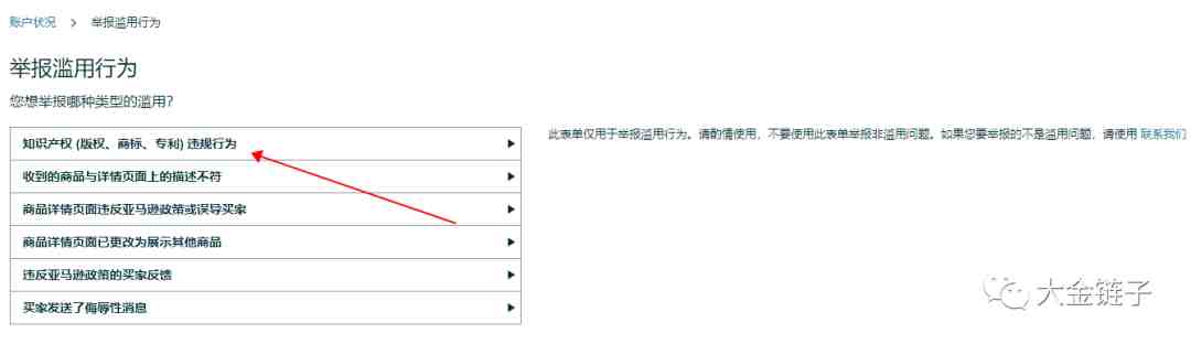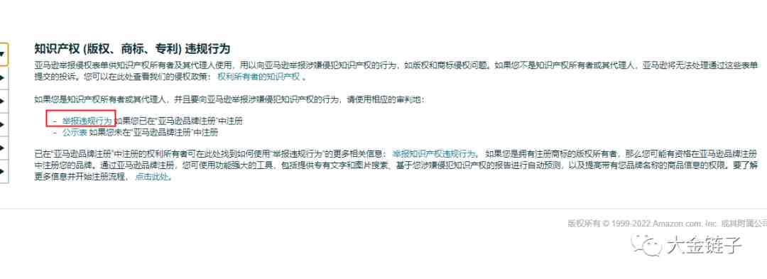 在知识产权 (版权、商标、专利) 违规行为的版块找到举报违规行为