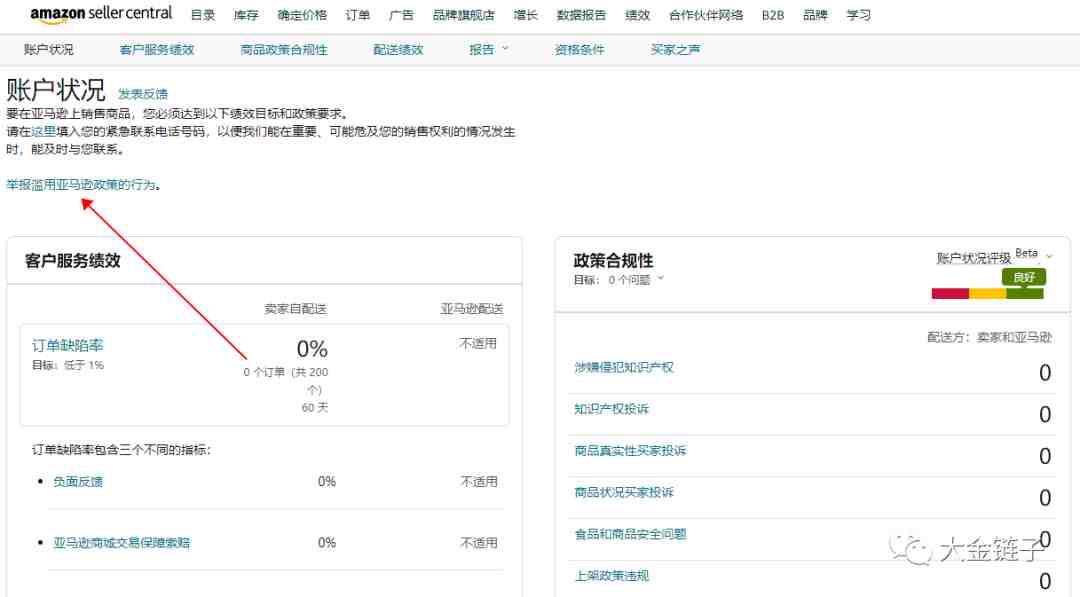 首先打开亚马逊后台-找到绩效-点击账户状况