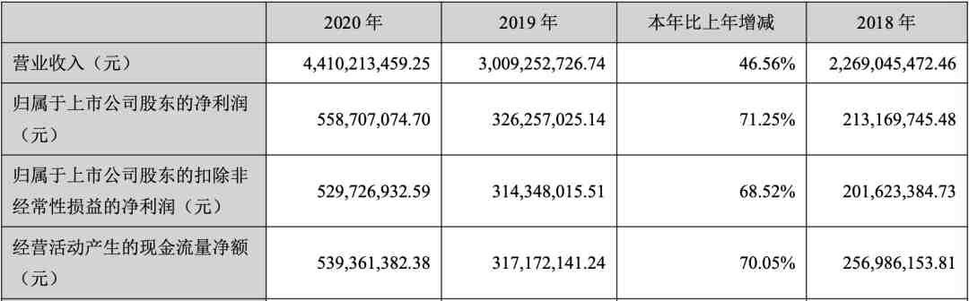 2020年,吉宏股份实现营业收入44.10亿元,同比增长46.56%,归属于上市公司股东的净利润5.59亿元,较上年同期增长71.25%。