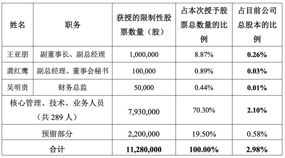 最初激励计划的激励对象共299人,到了最终实施,人数调整为292人,包括公司副董事长、副总经理、财务总监、核心管理、技术、业务人员等。