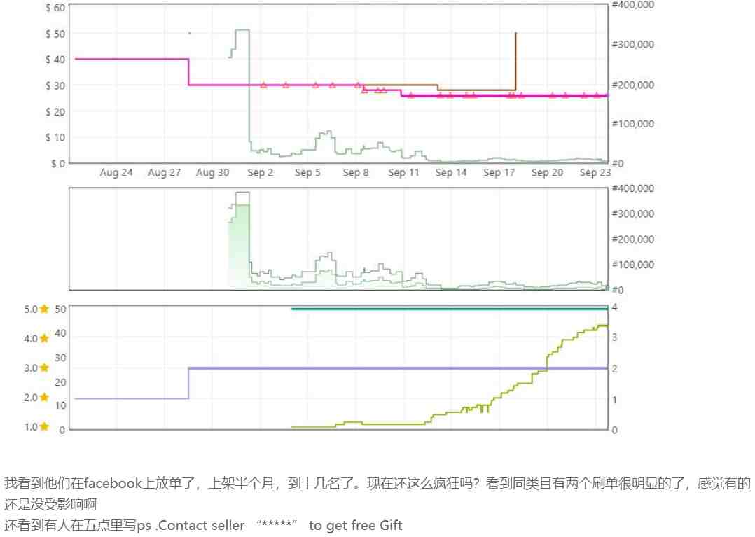 总结:各类目大佬在各个领域各显神通,大额优惠券+秒杀,FB大量放免评单,这些低价螺旋打法无一不拼的谁更低价。只要价格足够低,日出万单不是梦。