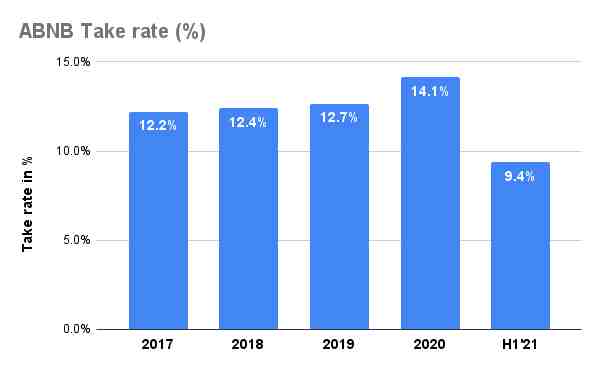 ABNB 季度毛利率。数据来源:S&P Capital IQ