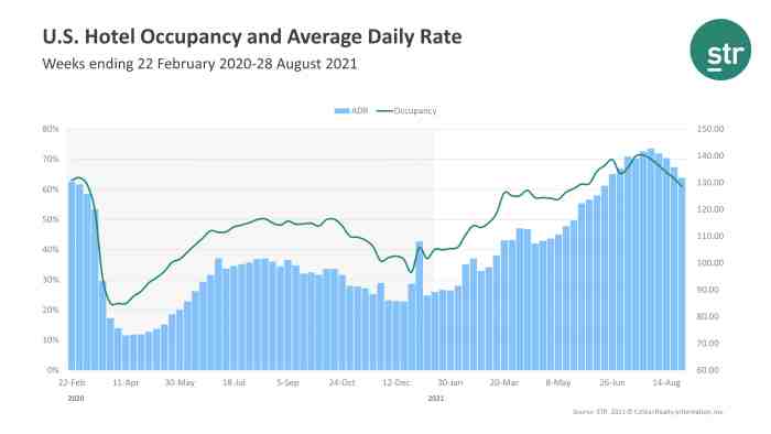 21 年 8 月,该行业的 ADR 也回升至 132.94 美元。当我们将其与 19 年 8 月的 ADR 132.47 美元进行比较时,很明显该行业经历了 ADR 的强劲复苏。