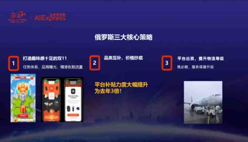 在供给端,除了速卖通原本的长尾商品、大量的中国商品之外,还会重点推进中国的商家加入海外仓。已经有不少俄罗斯卖家以及一些知名的本地品牌入驻速卖通,会跟中国的跨境商品形成很好的互补。此外,速卖通将对爆品卖家投入的商品进行平台补贴,今年补贴金额将是去年的三倍。