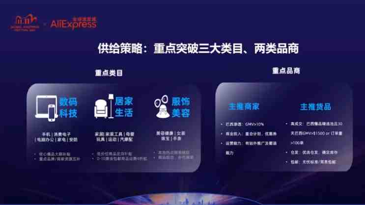 品类上,针对居家生活类、服饰和美容类产品,速卖通将跟本地的趋势潮流相结合,并与当地头部网红、渠道和社群去做一些定制化的内容,用风格化社交的方式撬动本地增长。