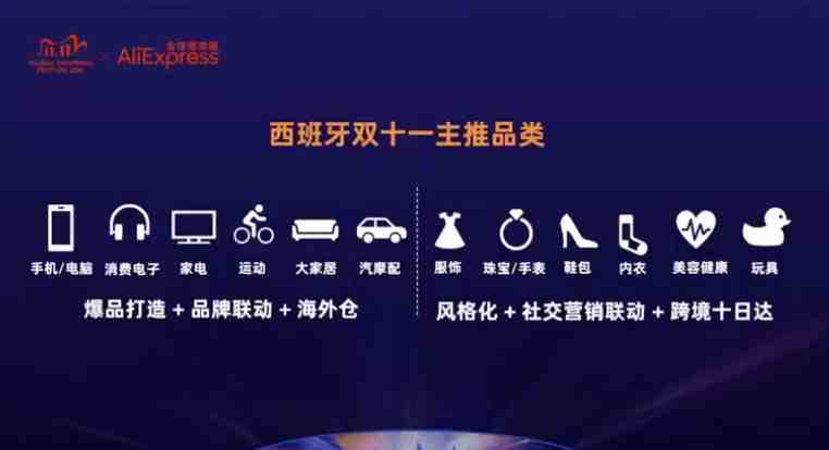 在双十一主推品类上,手机、电脑、消费电子、家电、运动、大家居、汽摩配等品类适合去打一些爆款。同时,速卖通建议卖家把爆品备到海外仓,数据显示,备货到西班牙海外仓的产品转化率能有1—2倍以上的提升。此外,平台将对海外仓的销售将有额外的补贴政策。