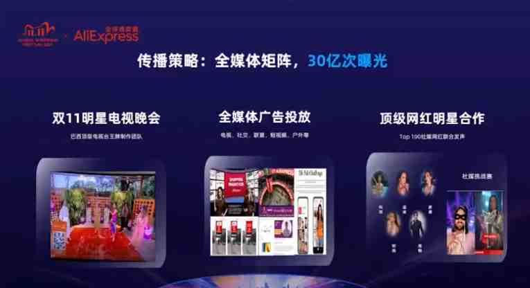 在今年的双十一上,速卖通巴西站将着力三个核心策略,一是邀请顶流明星,电视主持人,包括顶级网红和频道达人做一场类似天猫双十一晚会;二是运用站内大型互动游戏的玩法让用户跟晚会形成一个强互动,并通过线上线下全媒体的广告投放,做到大规模的流量的爆发;三是会跟顶级的网红和明星在社交平台上进行互动,发起社交话题挑战来做大规模的曝光。