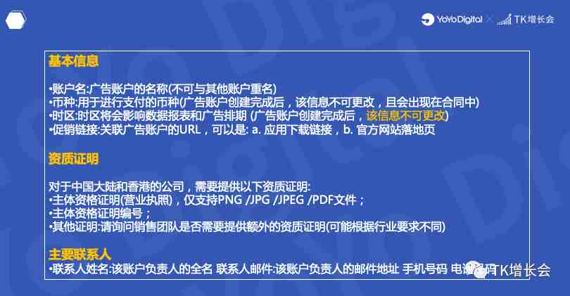 一般,我们都用国内公司执照找TikTok代理开户,开户的要求比较低,一般公司都是只要求首次充值金额不低于500或1000美金。