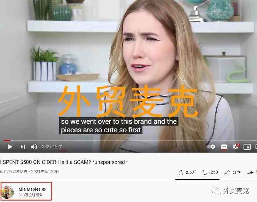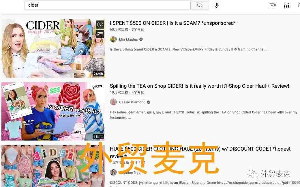 油管上超过300万粉丝的网红Mia Maples,在她发的Cider的免费测评视频里这么说。这个油管视频,3个多月就获得了60万的观看量。