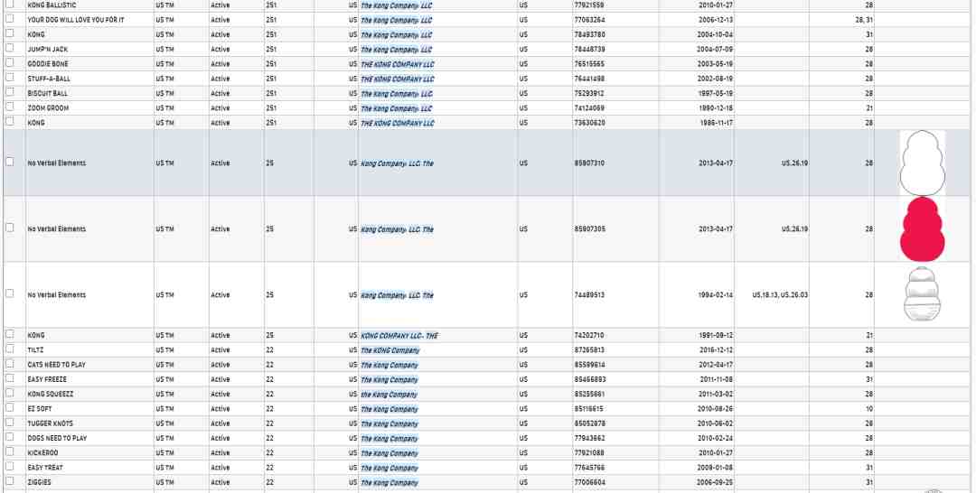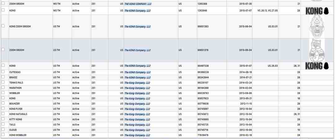 首先The KONG Company, LLC注册了非常多的商标。