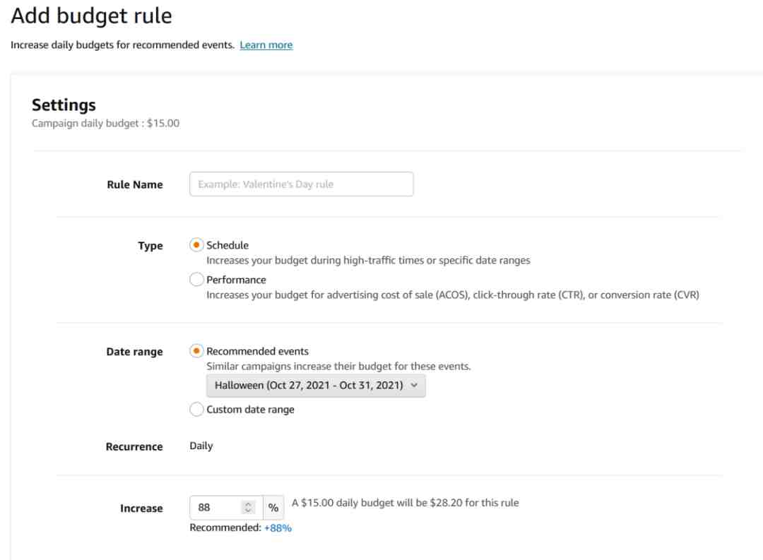 预算规则可以让卖家在指定的时间范围内提高预算。