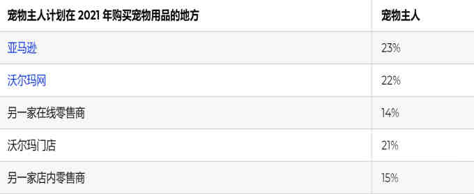 卖方通了解到,23%的受访者选择在亚马逊上购买宠物用品,选择沃尔玛的占22%。75%宠物主人是AmazonPrime会员,拥有Walmart+会员资格占50%。