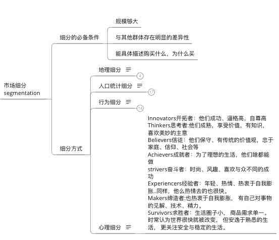 关于定位和受众选择问题不是我这篇文章能讲完的,推荐大家阅读营销经典著作 科特勒的《营销管理》,这本书比较硬核,我这有一些思维导图笔记。