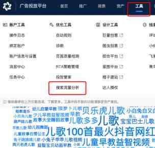 巨量引擎是抖音的官方投放平台,进入官网https://ad.oceanengine.com,打开 “工具”-选择“优化工具”-下面的“搜索流量分析” 即可!