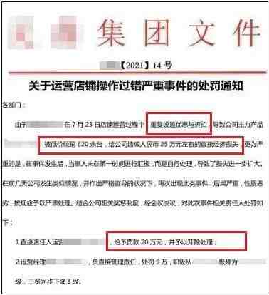 这是某知名跨境公司给某位运营人员开出的“罚单”。