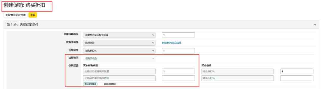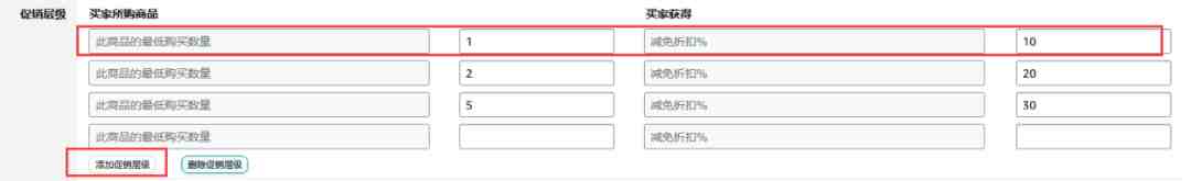 折扣促销也有两种方式:一种是购买本品打折,而且可以设置折扣层级。