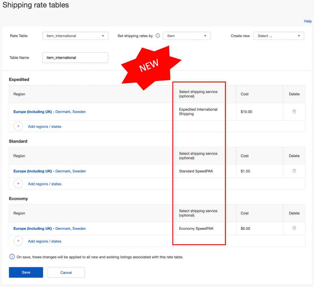 为了帮助卖家拓展全球市场,eBay一直以来致力于提供更好的平台支持,近期eBay升级了国际物流运费价格表(International Shipping Rate Table),在运费表页面增加了“Select Shipping Service”一列,让卖家可以选择配置详细的物流配送服务。