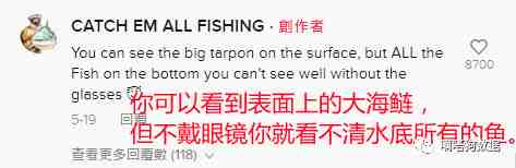 该热门视频由TikTok博主@zak_catchem于5-19发布,截至目前视频累计获得的数据,播放量:2410万;点赞数:390万;评论数:15.8k;转发数:62.5k。通过视频内容我们看到,当把镜头放到眼镜后面时,水里的鱼更加清晰可见,甚至还可以看到深水处的鱼群,让网友大呼“惊艳”。并且博主也在评论区内反馈了该眼镜具有良好的使用体验。可以看出这是一款即美观又带有实际功能的钓鱼太阳眼镜,如果把它推荐给喜欢钓鱼或野外活动的人群将是非常不错的选择,产品在视频中的展现效果十分不错,相对于普通太阳镜来说还是挺有宣传噱头的。