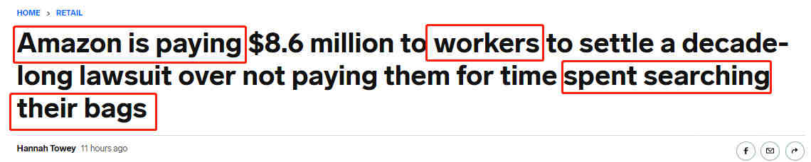 卖方通了解到,这并不是亚马逊第一次因无偿安全检查遭到员工起诉。