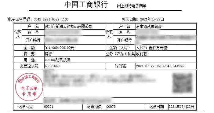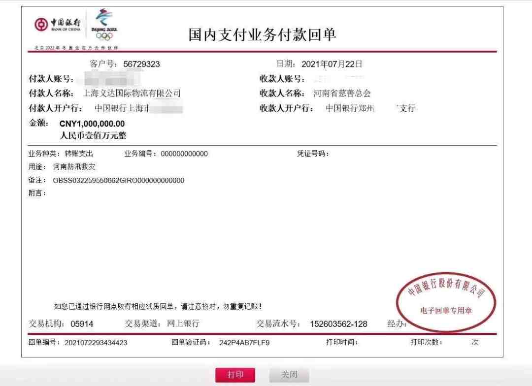 二、义达国际物流集团向河南灾区捐助100万救援资金