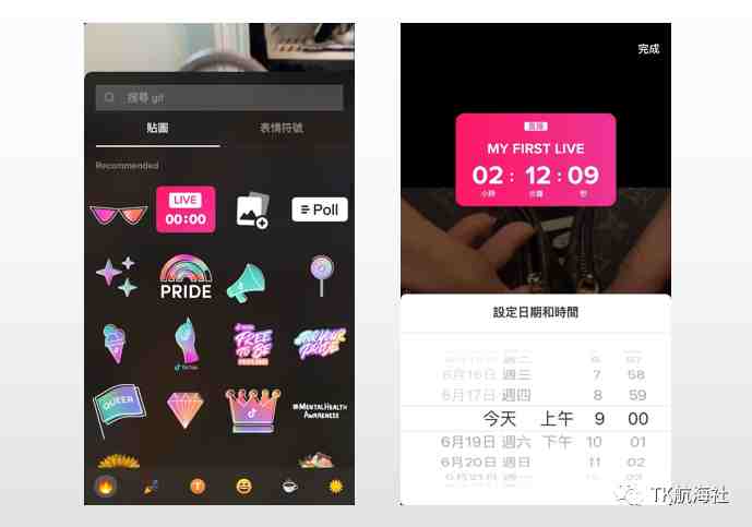 这个功能在你发布视频的时候在贴纸栏就可以找到(满足1000粉开直播功能即可)你设置好直播时间以后,贴纸会开始倒计时,当用户刷到你这个视频就知道你将在几点开播,他可以点击贴纸预约你的直播。等你开播的时候直播间就会涌进大量的用户观看。