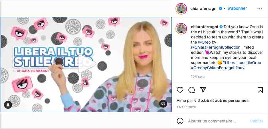 2020年3月的网红营销活动,使奥利奥通过与一个非常受欢迎的超级影响者合作,加强了其在千禧一代和Z世代中的 "酷 "形象。此外,Chiara Ferragni凭借其自身庞大的粉丝社区,为该品牌提供了巨大的全球影响力,极大地放大了合作及其表现。