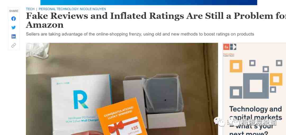 华尔街则直接用“亚马逊虚假、夸大的评论仍然是亚马逊的问题”当做题目,《Fake Reviews and Inflated Ratings Are Still a Problem for Amazon》。