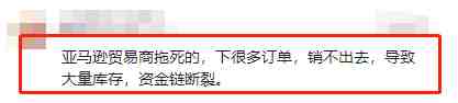 有卖家表示:“亚马逊贸易商拖死的,下很多订单,销不出去,导致大量库存,资金链断裂。”