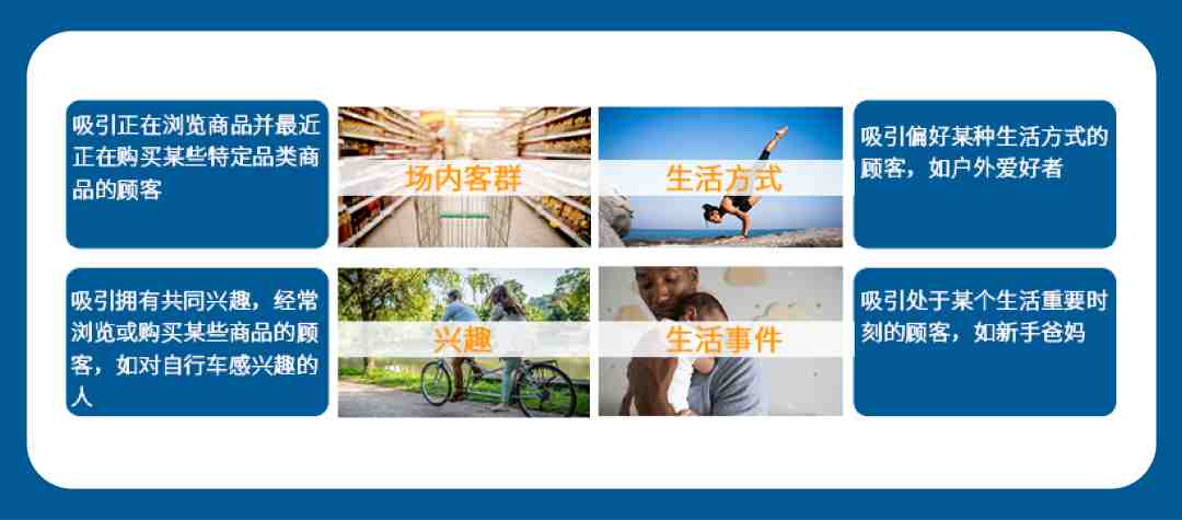 “亚马逊消费者”提供了数千个预先构建的细分受众群,帮助卖家准确定位目标人群,增加展示,从多个维度锁定新的潜在顾客。包含四个主要类别:场内客群、生活方式、兴趣、生活事件。