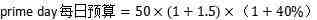假设产品A往年Prime Day每日预算为100美金,往年平日每日预算为40美金,由此得出产品A的往年Prime Day每日预算增幅为:1.5.