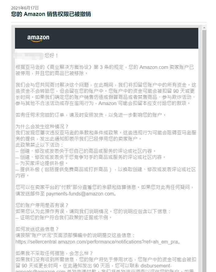 产品上架到现在才两个来月的时间,收到过两封绩效警告邮件。一个月前早就暂停了刷单、测评,也经历过差评、被标杀虫剂、页面移除,到如今的账号权限移除......虽然知道某宝的问题必定会在亚马逊掀起一番风波,只是没有想到那么快就应到我身上了.....