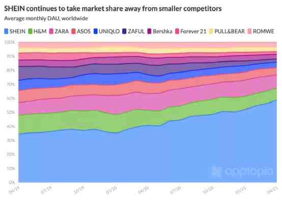 (Apptopia 4.19-4.21 全球头部快时尚品牌日活)一位从事跨境电商10余年的深圳朋友告诉亿观先生,SheIn创始人许仰天,这样的一位二本院校的毕业生,“秒杀”了众多北大(如跨境通创始人徐佳东)、常春藤名校毕业生(安克创始人阳萌),真是充满传奇色彩。确实,许仰天的起点,要比深圳众多一线跨境电商企业的创始人更低。许仰天与阳萌,同为80后,相差仅2岁,但两个人成长经历迥异。许仰天出身穷苦,小时候经常“馒头泡酱油”,高三开始一边读书一边打工,最后上了一个二本普通大学。