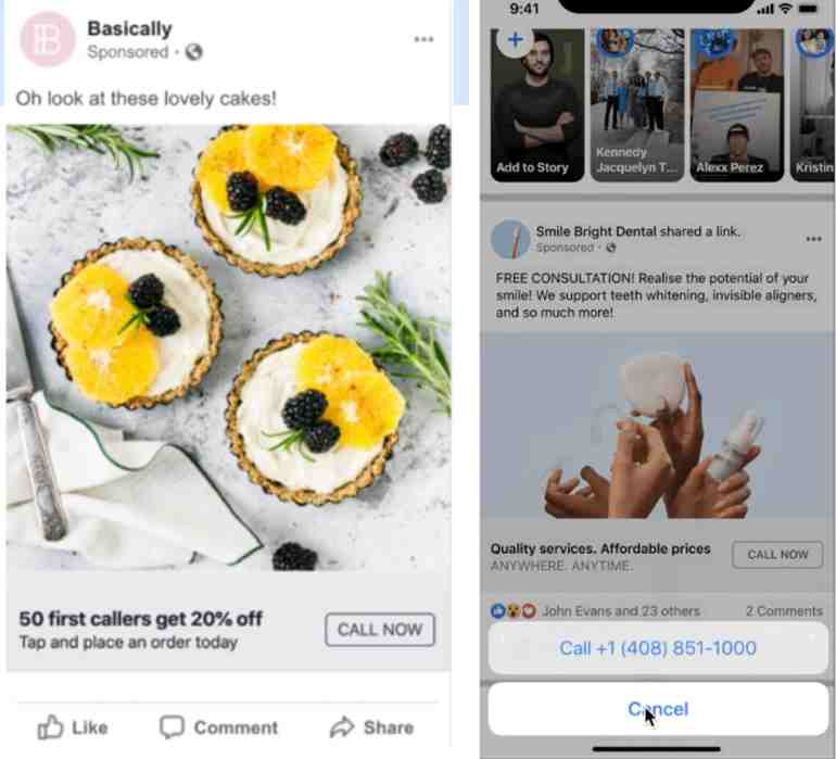 从5⽉24⽇开始,Facebook将开始在⽹站转化⼴告中推出- 通话附加功能。这个功能让⽤户可以选择直接致电商户以了解更多信息或访问他们的网站进⾏转化。但是仅可⽤于应⽤端 Facebook 动态消息版位。