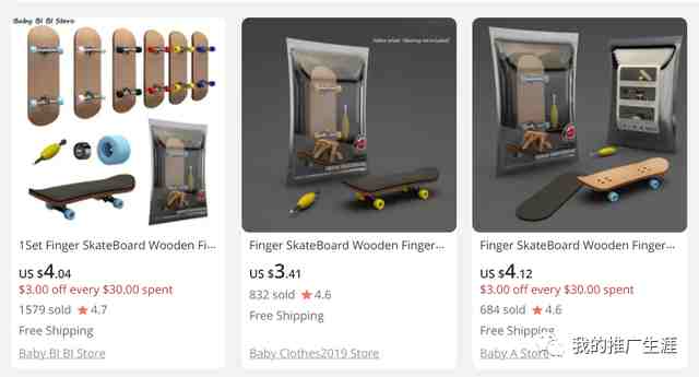 手指滑板,国内外都有很多的粉丝受众,但是这不是一个最近几年才出现的市场,而是出现挺多年了,如下图淘宝上面也有众多产品,有9.9元5个的,也有49元一个的。