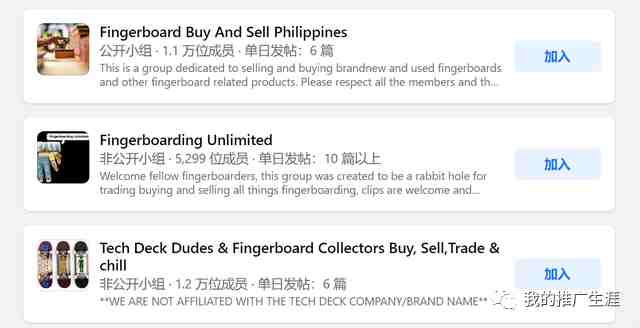 在facebook和reddit等社交平台上面手指滑板有非常多的小组,既有几万人的大组,也有几百人的小群组,如果对这块市场感兴趣或者想找到更多类似的产品,大家不妨去小组里面阅读下各种讨论,帖子。