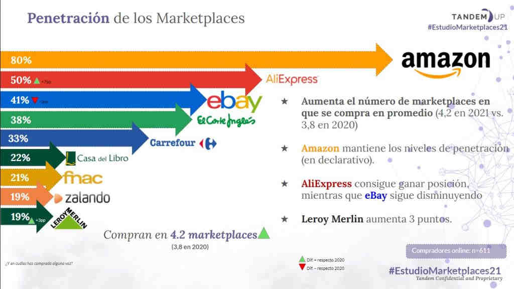 研究显示,就市场渗透率而言,与上次调查相比,速卖通增长最多,达7%。而eBay自2018年以来在西班牙电商市场的份额持续下降。