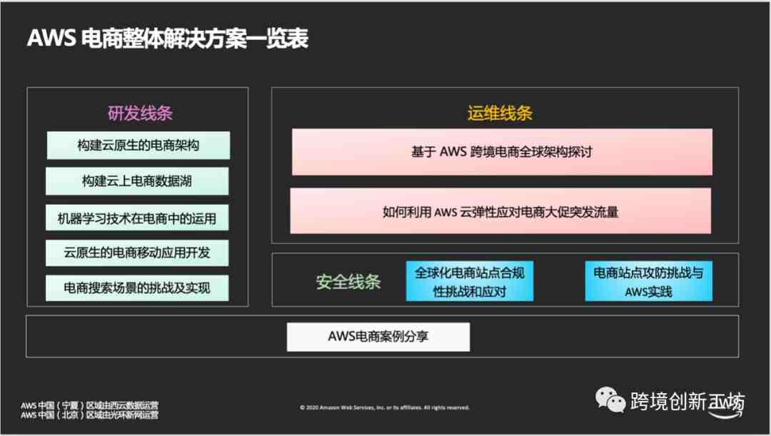 但是,这样解释太专业,很难理解。简单地说,亚马逊云服务源自亚马逊14年来的电商发展和客户服务经验,把自身一整套电商应用理念和技术加以整理和对外开放,从而能够赋能更多零售商和电商。当前,越来越多的客户选择AWS 来托管他们的云基础设施,并实现性能、安全性、可靠性和可扩展性的提高。