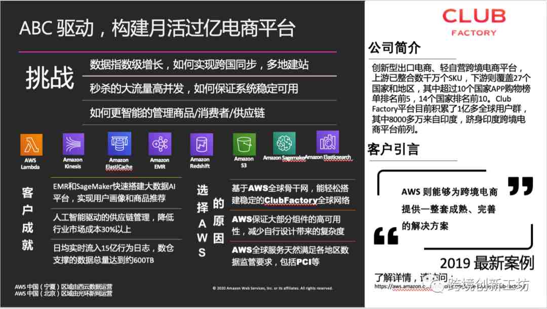 AWS 连续第10 年被Gartner 评为全球云IaaS 魔力象限领导者。因此,不难理解,我们行业当中一大批优秀跨境电商,比如环球易购、Anker、Aukey、Patpat等等,基本都采用了亚马逊云服务。