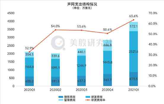 Q1季度声网录得亏损-1469.1万美元,这是自去年Q2盈利后连续第三个季度亏损,且环比大幅增长137.6%。那么,声网的钱花在哪?
