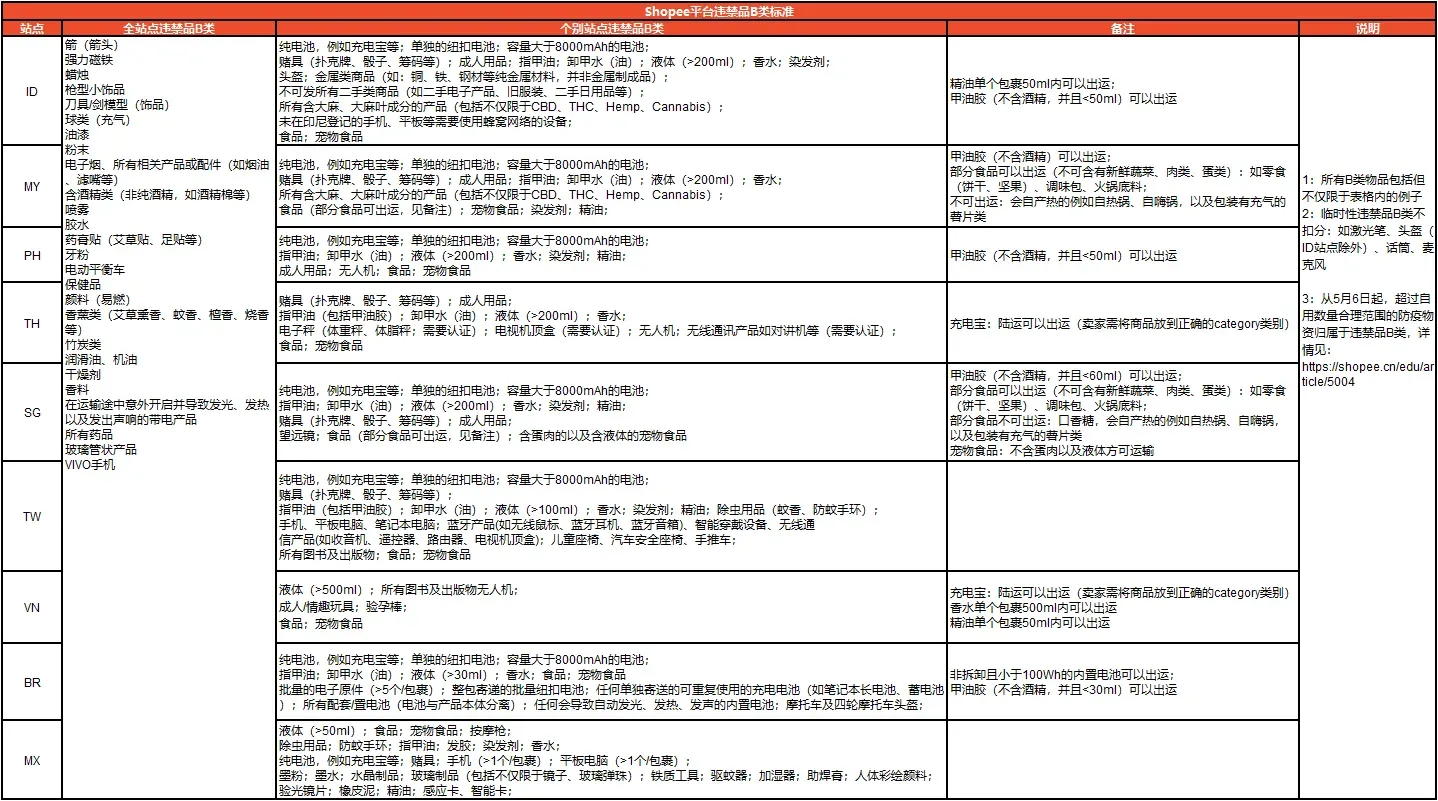 - 新增墨西哥站点违禁品AB类违禁品标准