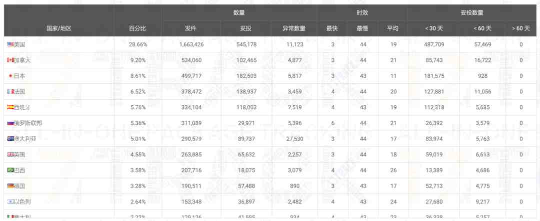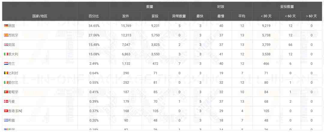 *文中涉及的发件国、收件国,需要理解为“邮路渠道”