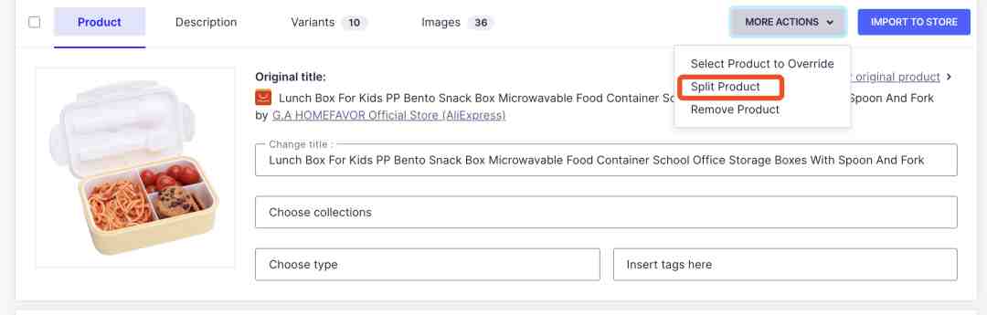 然而今天看到Oberlo有一个功能,叫拆解变体Split Product