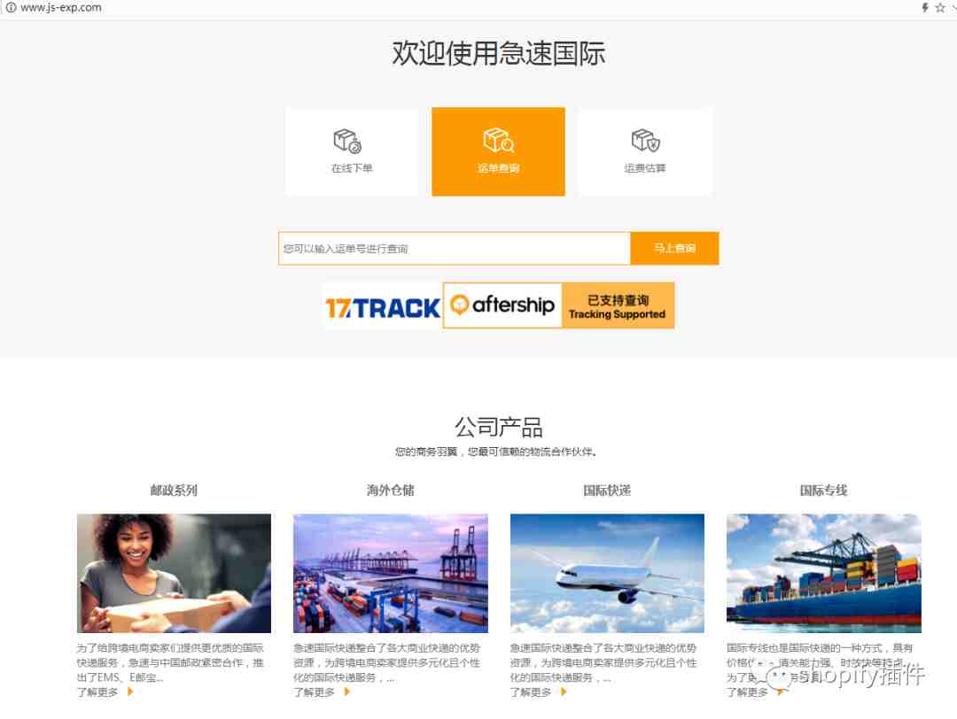 主要产品有国际快递、国际专线、小包速递、包税专线、FBA头程服务、JS国际快递物流管理系统等;与DHL、UPS、TNT、FedEx、EMS、DPD、Yodel等建立了战略合作关系,同时与eBay、亚马逊、敦煌网、速卖通、wish、Esty等主流跨境电商平台和知名独立网站有着紧密的合作,依托大陆苏州总部,先后在上海、广州、深圳、义乌、青岛、杭州、成都等多个典型外贸城市设立了分公司,并在桂林成立运营中心,成功对接芒果、华磊、马帮、店小秘、普源、通途、E商赢、易仓等数十个优质ERP平台。官网:http://www.js-exp.com/