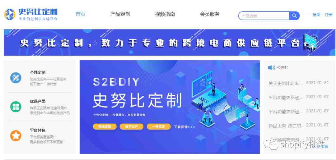 一个免费定制,一键式全渠道分销,跨境电子商务供应,无库存供应链的平台。在跨境电子商务,智能供应链等领域积累了多年的经验。该平台依靠史努比的供应链进行了多年的深入培养和积累,为分销商提供免费仓储,独家包装,品牌曝光,自动分销,数据统计和智能预警等多种服务,以便分销商可以在家中完成 产品选择,定制,销售和交付的一站式服务。这是他的官网:https://s2bdiy.com/home/homePage
