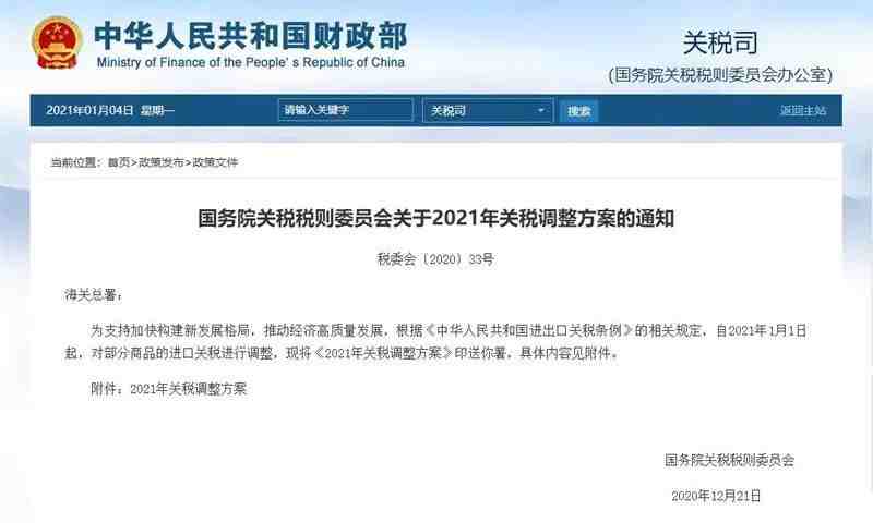 12月23日下午,国务院关税税则委员会发布关于2021年进口暂定税率等调整方案的通知,2021年将调整部分进口商品的最惠国税率、协定税率和暂定税率