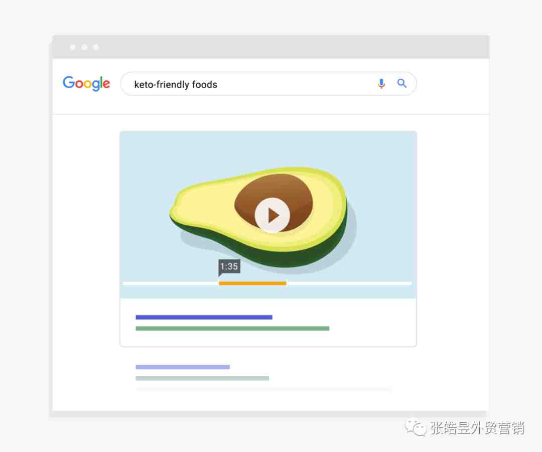 例如下面这个视频分成了好几个部分,当用户搜索其中一个部分的关键词的时候,谷歌会从视频中分析出能够满足用户搜索意图的视频section作为FS。
