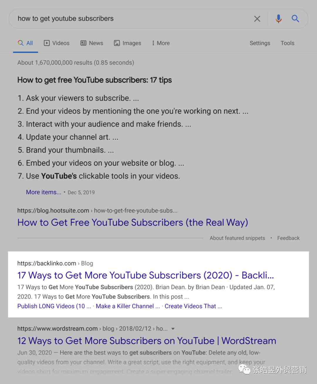 Brian举了一个例子,当用户在谷歌上搜索“how to get youtube subscribers”的时候,出现的结果页面都是list类型的文章。