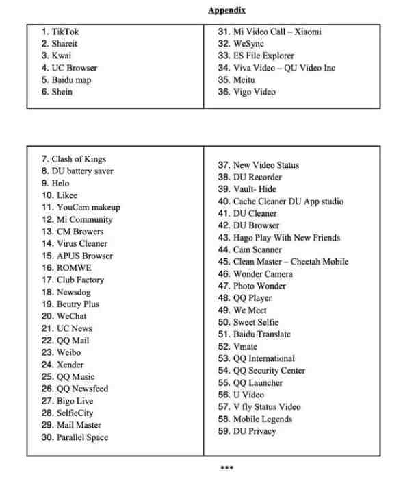 这47种中国应用程序是之前被禁止的应用程序的“克隆”产品,即精简版程序,例如Tiktok Lite、Helo Lite、ShareIt Lite(茄子快传精简版)、Bigo Lite、VFY Lite等。