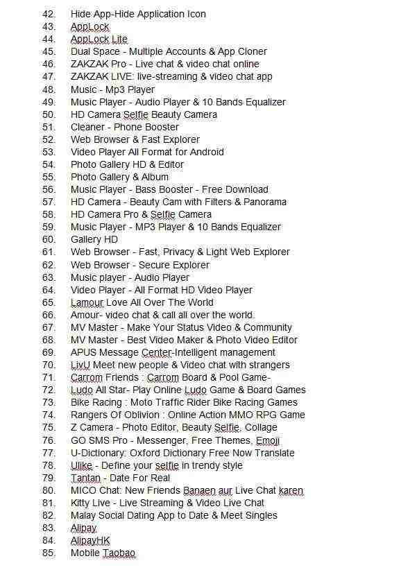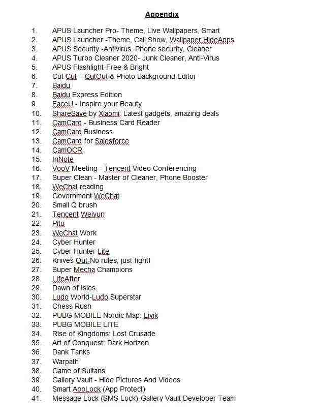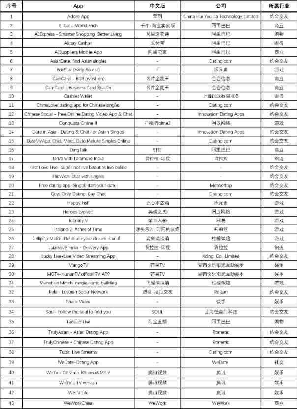 以下为本次禁止的43款中国App完整名单。