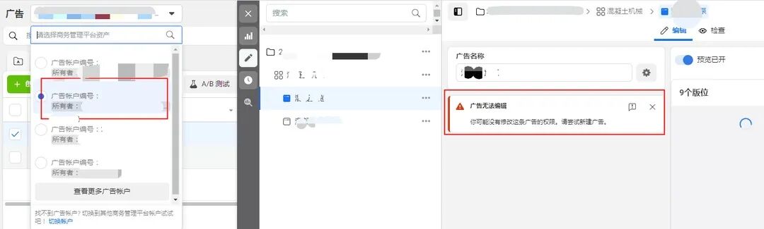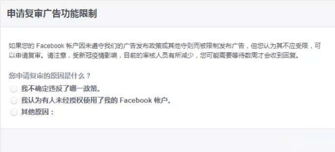 如果你在投放过程当中出现了以下这种情况,恭喜你你中招了,业内俗称【个人号降权无法操作企业广告账户】,跑广告最近只要一个新号拉进BM,99%都会出现的行业大问题! 那到底有什么方法可以解决呢? 【准备工作】 1.准备好一张未验证过fb的身份证正面照片,手机下载DUOMOBILE 2.受限个人号进BM,确定此号有申诉按钮 3.点击申诉,确认是否是通过身份证照片来申诉,否则无效切记不能申诉只是确认是不是图片验证有的验证是申诉广告账户 [如下图就不适用此教程] 【开始申诉】 1、进设置-手机,看是否绑定有手机号码,如果没有则需要绑定,最好绑定对应国家的号码,用接码平台https://f4.work/index.php注册充值用付费的电话号码切记不要删除别人之前的电话号码只要添加一个电话号码用打码平台获取验码 2、点击头像进入个人信息设置,修改生日为身份证上的,最好在“其他名字”添加下身份证上的名字 3、点击设置-安全与登录-使用双重验证-编辑(弹出验证个人号密码)-你的安全验证方式-管理-添加新应用(弹出二维码)--用duomobile扫码验证密码(手机谷歌浏览器搜索Duomoblie下载安装原理同谷歌身份验证器是一样的) 4、回到第2步申诉-上传身份证正面照片之后出现谢谢你的配合请耐心等待。。。刷新页面秒解封( 回来之后是这个样子的如下图 ) 恭喜你,解封成功! No No No别高兴太早! 【突然之间,我的权限已经不足以修改广告了?What?】 客户那边为什么显示这些?是权限的问题吗? 我们发现账户之前都是客户操作,那既然他们可操作说明是有这个广告账户的操作权限 【方法一】 当然,客户那边显示的是操作用户有权限,公司主页界面依旧有权限。所以? 【方法二】 如果是优化师操作的过程中出现的,我们可以点击感叹号的位置,提交下报错 But!还是不行! 经过彻查,发现,源头出自于网站被标记从而引发的无权限编辑广告,立刻申诉,大概在1-2天申诉成功,不过要根据该时间的复杂程度来确定! 申诉成功后就会有FB人员给您邮箱发送解封信息了。 切记:需要您密切留意您的邮箱,一旦有任何资料需要和您联系,他们会通知你的! 以下为FB社群政策链接及申诉通道: 社群守则政策链接: https://www.facebook.com/communitystandards/ 域名被封申诉:https://www.facebook.com/help/contact/571927962827151 页面被封申诉:https://www.facebook.com/help/contact/2158932601016581